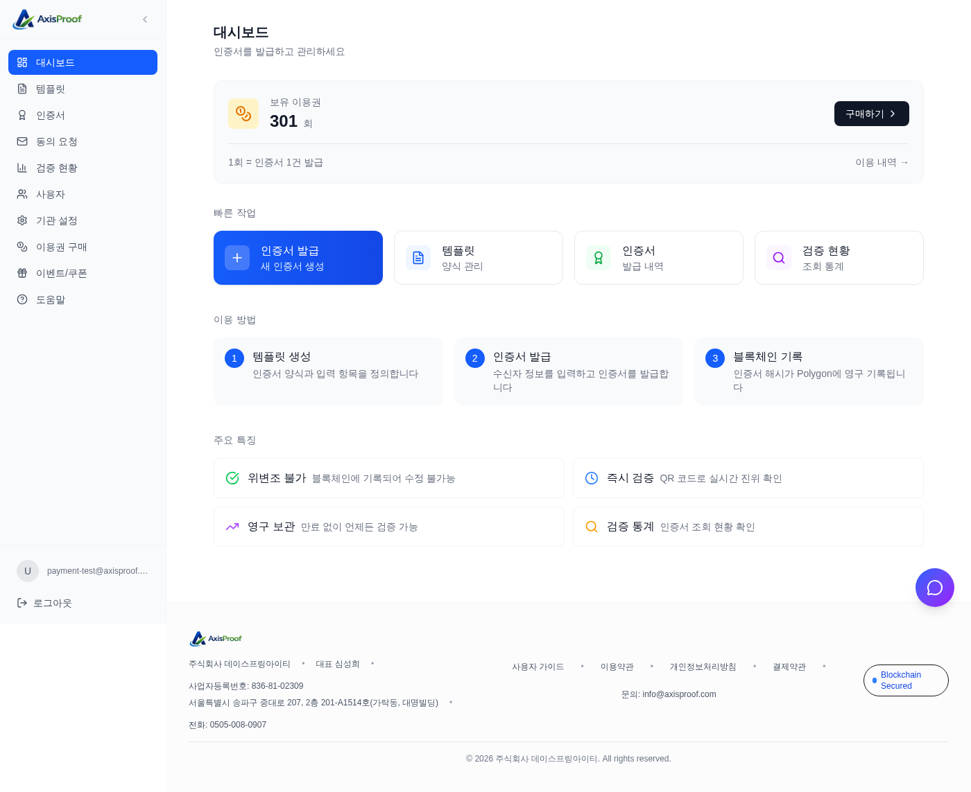 AxisProof 소개: 블록체인을 이용한 디지털 인증서 발급 SaaS 서비스