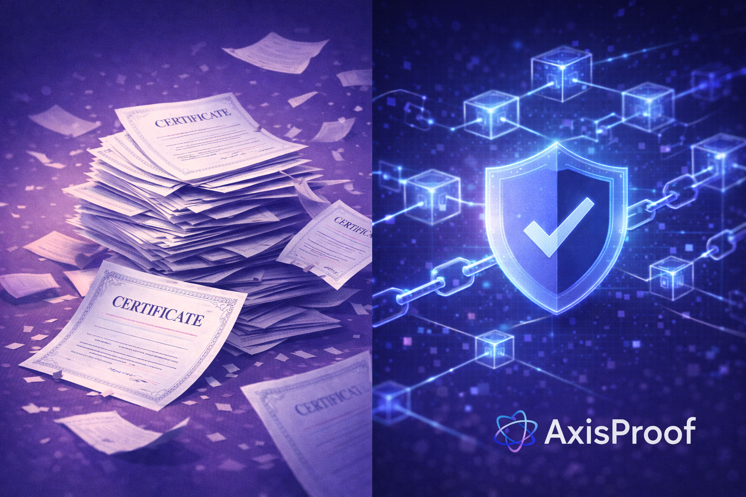 종이 인증서는 위변조가 쉽고 검증이 어렵습니다. 블록체인 인증서는 발급 즉시 해시값이 기록되어 누구나 진위를 확인할 수 있습니다. 두 방식의 차이점을 비교합니다.